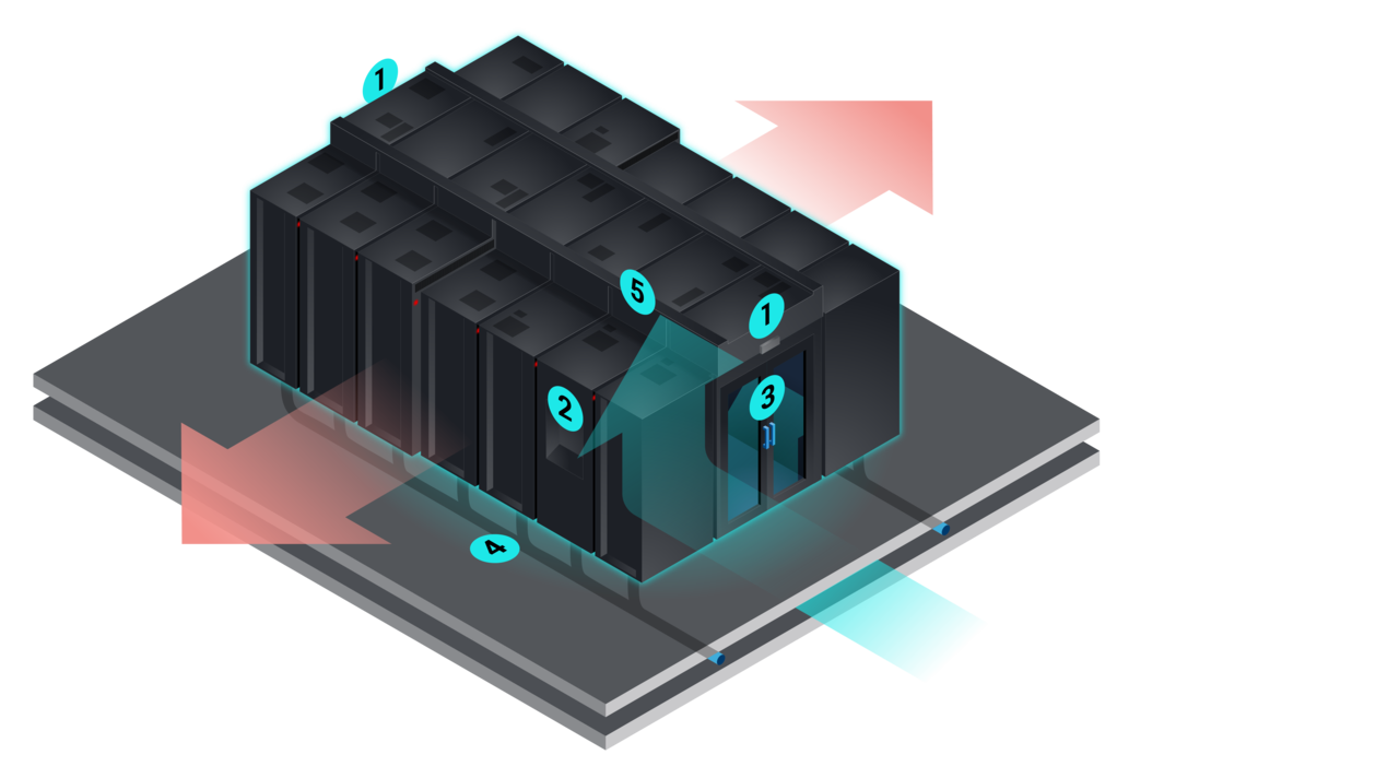 Unsere Racks befinden sich in einer Cold-Cube-Einhausung, die auf dem Prinzip der Trennung von warmem und kaltem Luftstrom basiert. Diese sorgt für eine bestmögliche Kühlung Deiner Geräte bei maximaler Effizienz. Durch die Lüftungsplatten im Doppelboden eintretende Kaltluft strömt durch die verbauten Server. So garantiert das System eine möglichst gleichmässige Temperatur im ganzen Rack. Der Cold Cube ist darauf ausgelegt hohe Wärmelasten abzuführen, Hitzestaus zu vermeiden und Kühlungskosten zu senken.